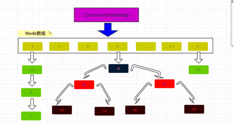 对比java7的ConcurrentHashMap在java8中做了较大的调整,java8的ConcurrentHashMap的结构如下图: